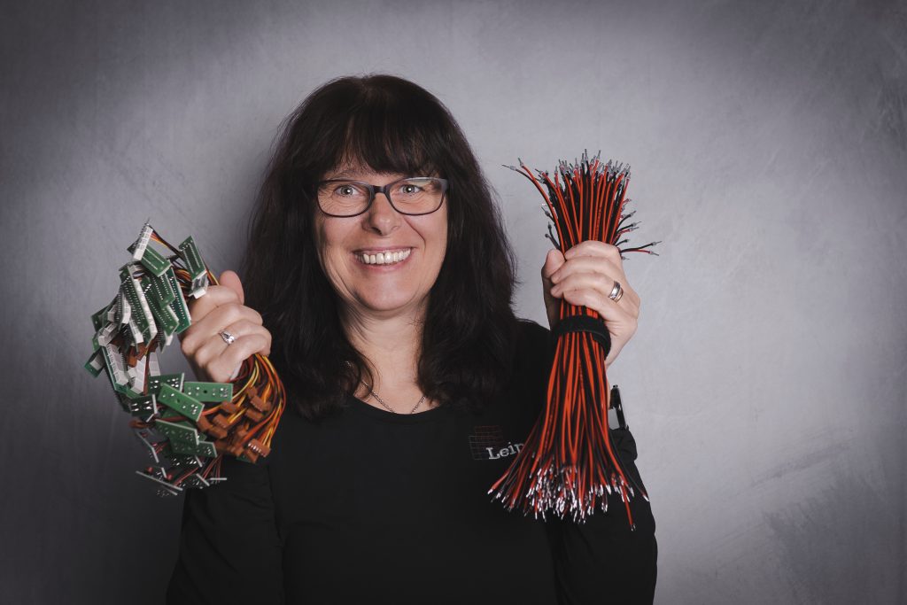 Kabel werden bei uns im Haus abgelängt, konfektioniert und vollständig geprüft. Das beinhaltet sowohl die BUS-Kabel zum Verbinden unserer Baugruppen, als auch die für die innere Verdrahtung der Geräte benötigten Kabel. Die BUS-Kabel werden in Handarbeit abgelängt, gelötet und verschraubt und mit einem teilautomatischen Prüfgerät getestet. Für die Produktion der zur Verdrahtung der Geräte benötigten Kabel werden verschiedene vollautomatische und teilautomatische Abläng-, Abisolier- und Crimp-Maschinen verwendet